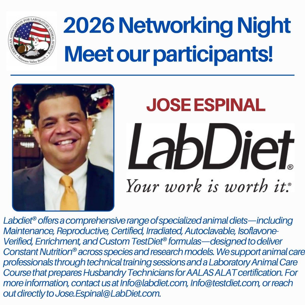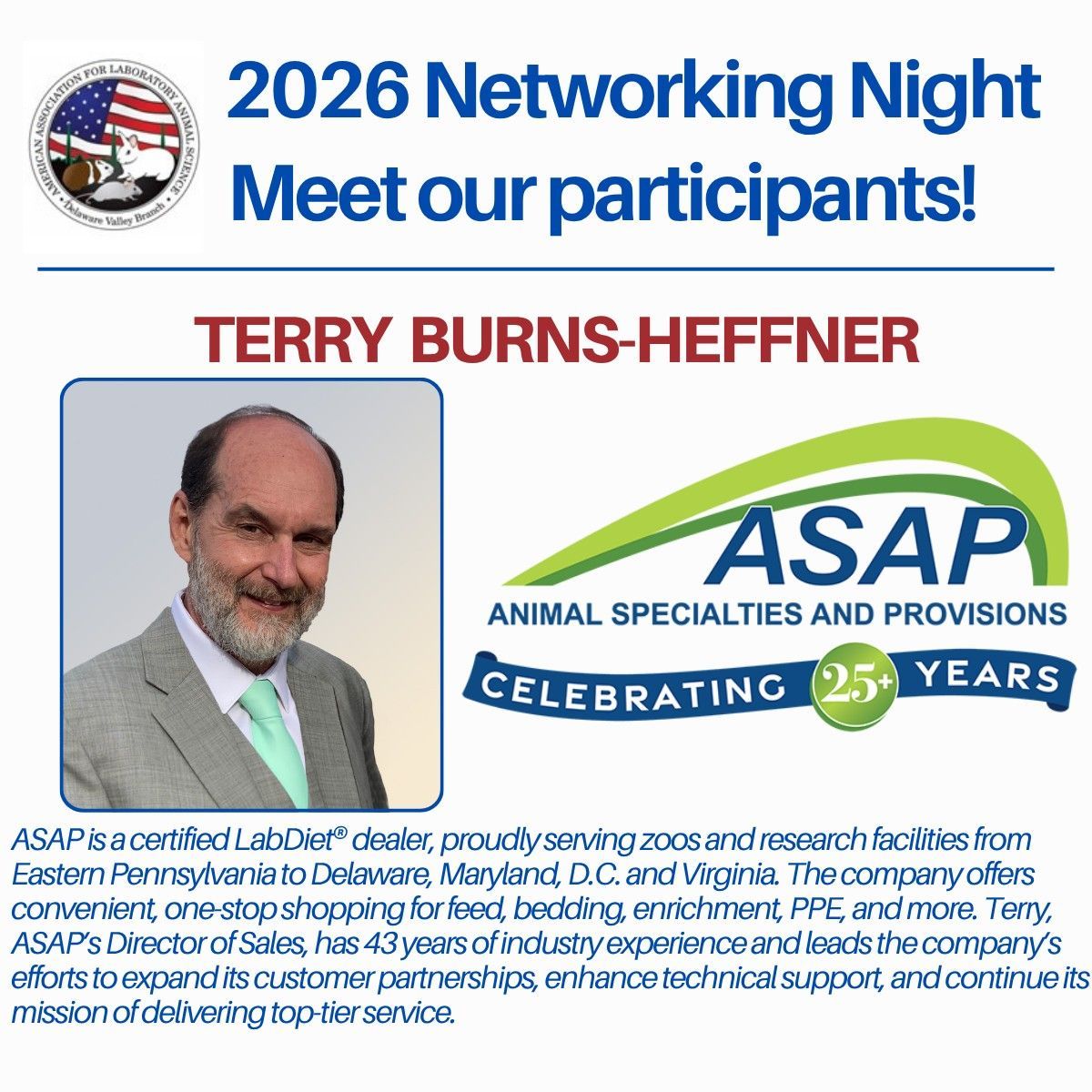 Join DVB AALAS for an evening of meaningful connections at our upcoming Speed Networking Event! This isn’t your average networking night — we’re shaking things up with structured group speed meetings designed to help you meet more professionals, faster. Whether you’re looking to grow your business, explore collaborations, or simply expand your lab animal circle, this event is built to spark valuable conversations and lasting relationships.